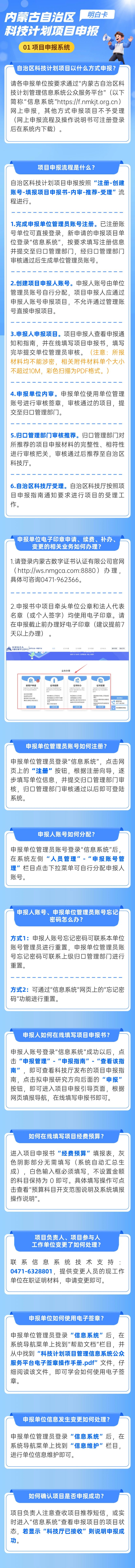 自治區(qū)科技計劃項目申報已經(jīng)開始啦!為了讓廣大科研人員更加清晰地了解項目申報系統(tǒng)操作、項目申報單位、項目負責人、經(jīng)費預算等項目申報要求,我們推出了一套科技計劃項目申報“明白卡”,直接把申報“難題” 拆成“選擇題”——重點劃到眼前,步驟列成清單,小白也能跟著走,抓緊收藏!